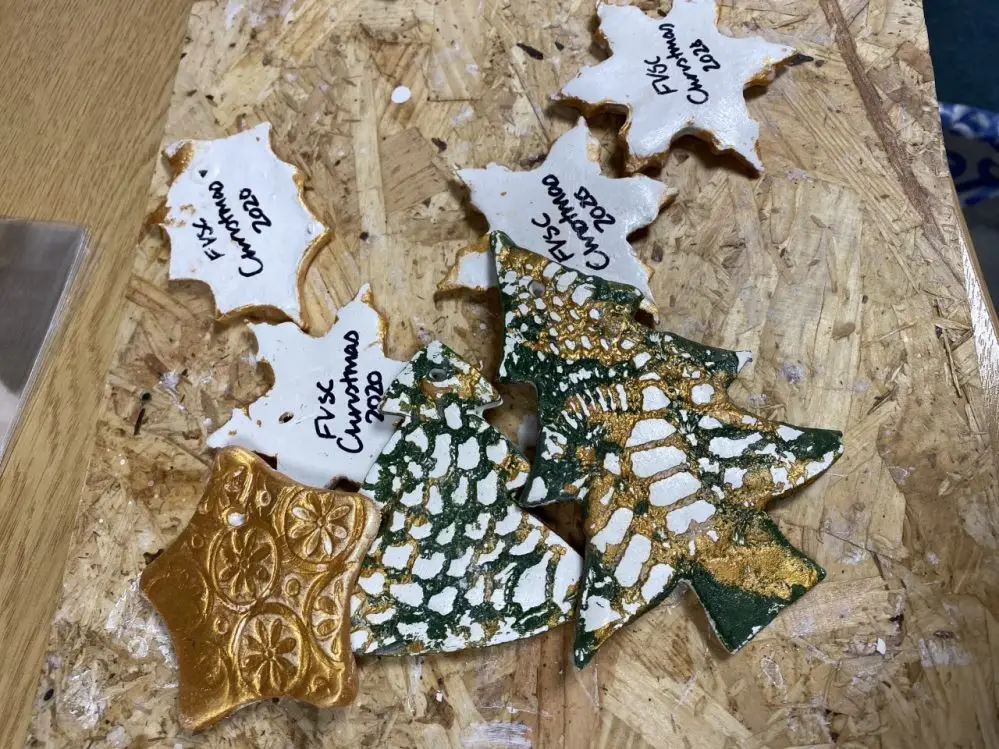 With the money the Centre received the Art Group created lovely Christmas decorations (an example of the fired decorations is below), as well as sensory packs with useful/fun items for lip-readers.